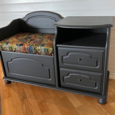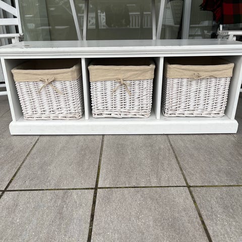 Praktisk og dekorativ sittebenk med oppbevaring gis bort.