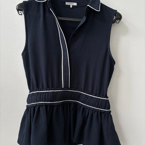 Ganni topp og bukse for dame i størrelse 38. Plagget er laget i viskose og har et blåmønstret blomstermønster.