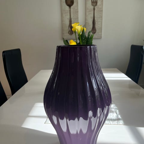 Stor lilla lyslykt/ vase med vridd bunn.