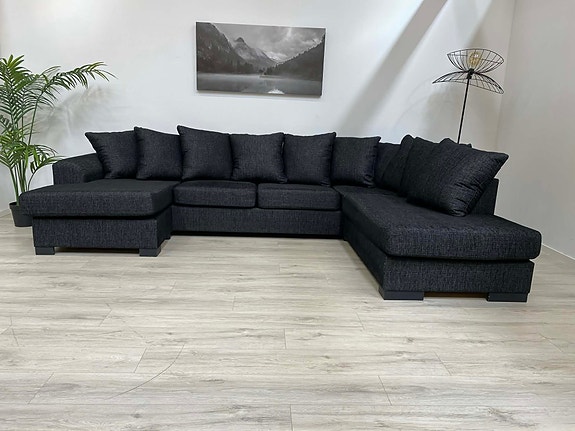 Vi har IKKE normalt butikklokale! Detter er nettbasert butikk med varelager som vi selger direkte ut fra. Derfor er ingen av sofaene satt opp for å vises. Vi har ikke mulighet til å sette opp mer enn 2 sofaer per kunde.