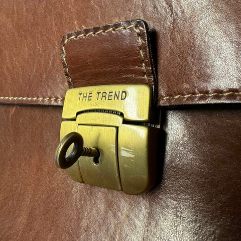 Selge koffert fra merket CHIVAGO. Den er klassisk modell i brunt lær med solide håndtak og kodelåser i messing. Kan sende for betaling.