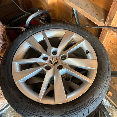 Selger et sett med komplette sommerhjul.