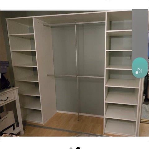Høyt garderobeskap med speil gis bort. Har hyller og skuffer.