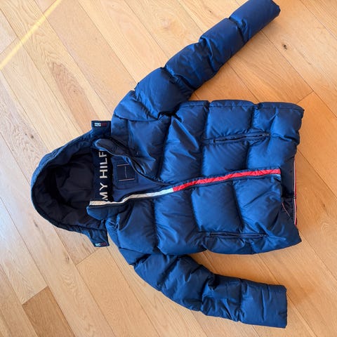 Tommy Hilfiger lettdunjakke i str 176. Litt liten i størrelsen. Dette er en klassisk jakke som er perfekt for høst og vår.