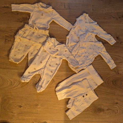 Newbie babyklær for gutt i størrelse 56 i blåtoner. Pakken inneholder: