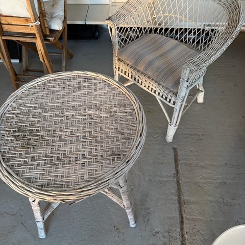 Ukjent merke hagestol og rundt bord rotting glassplate