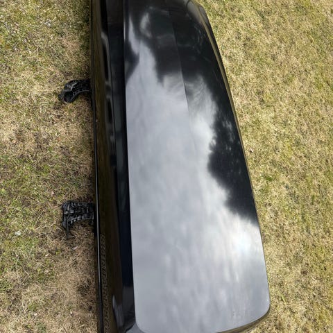 Skiguard 830 takboks i svart utførelse. Aerodynamisk og lav profil, med gjennomgående kanaler til takstativ. Boksen er kjøpt i 2024 og har 4 år resterende garanti.