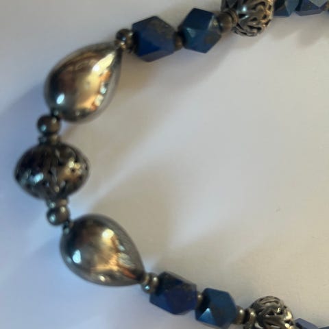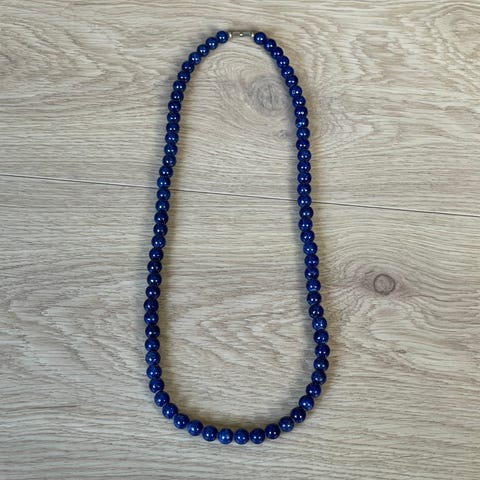 Selger et nydelig, klassisk perlekjede med ekte Lapis Lazuli. Dette er et smykke av høy kvalitet med flott håndverk, sannsynligvis fra 1960-70-tallet.