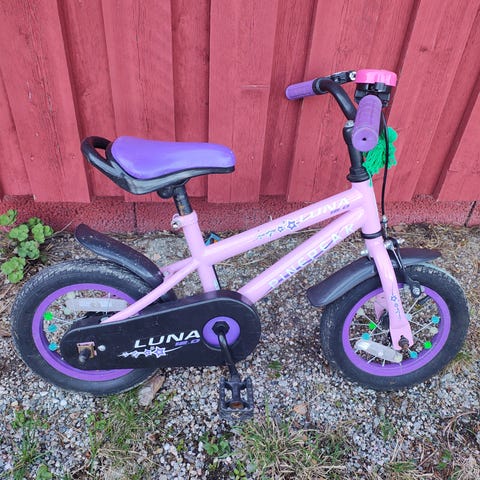 Frøkna vår har vokst fra sykkelen sin❤️ Den er pent brukt, men noen bruksmerker. Skrapt litt på styret. Se bilder. Ellers oppbevart under tak på sommeren og innendørs hele vinteren.