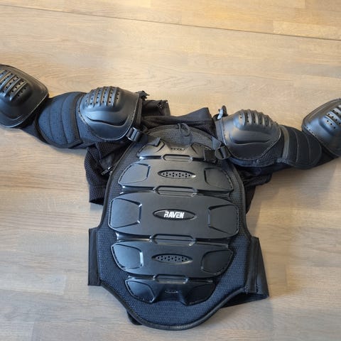 Alpinestars Bionic Action Jacket beskyttelsesjakke i størrelse S. Jakken er svart og består hovedsakelig av polyamid med harde beskyttelsesskall i polypropylen. Den har integrerte beskyttelser over bryst, rygg, skuldre og albuer, samt justerbare stropper for tilpasning. Egnet som kroppspansring/beskyttelsesjakke til motorsykkel, motocross eller lignende aktiviteter der det er behov for overkroppsbeskyttelse.