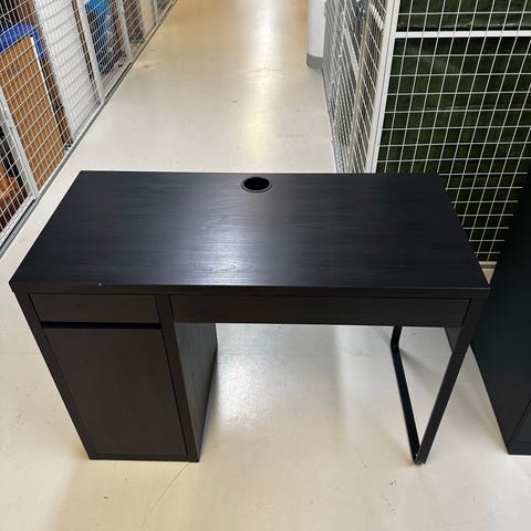Elektrisk hev‑ og senkpult skrivebord i svart. Bordet har rektangulær bordplate og to rette ben med elektrisk høydejustering, styrt med betjeningspanel under bordplaten. Egnet som arbeidsbord eller hjemmekontorpult, med plass til skjerm, tastatur og annet kontorutstyr på bordflaten.