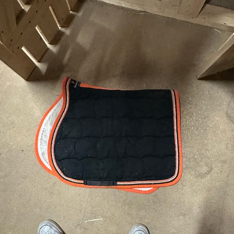 Pent brukt sett med ørehette og shabrak fr Anna scarpati str ponni (P) med bling. Blå ørehette og hvit shabrak.