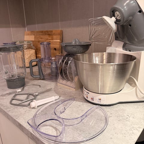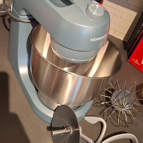 Som ny Kenwood Chef kjøkkenmaskin med hele 1000 watt selges. Selges med utstyret som kan ses på bilder. Den er nesten ikke brukt kun få ganger. Ny pris over 4000kr.