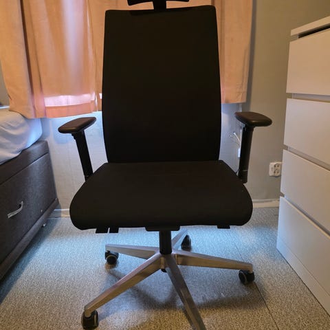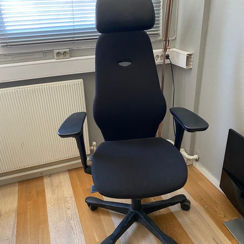 Jeg selger veldig fin kontorstol, den er lite brukt og er som ny. Den har rygg + nakkestøtte og er veldig komfortabel og passer til hjemmekontor eller kontorarbeid.