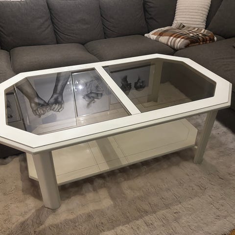 Veldig Fint sofabord selges fôr billig , den er dekket med glass design .