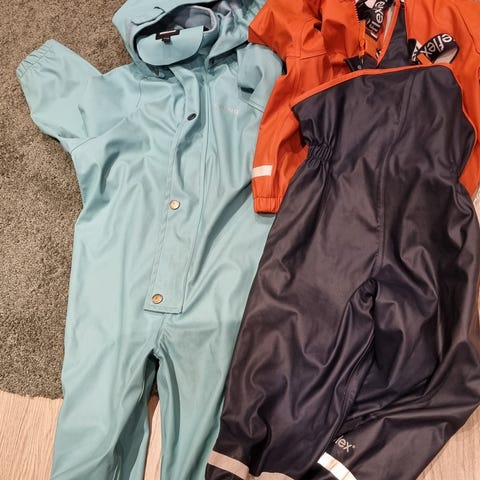 Klespakke med regnjakker og skalldress i str. 98 (HH, Stormberg og Nordbjørn)