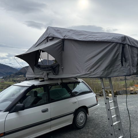 Den største fordelen med dette kontra et taktelt med stofftak, er at glassfiberen er 100% vanntett, det er mer aerodynamisk og det tar deg 20 sekunder å gjøre teltet klar for bruk.