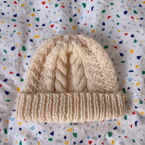 Ny strikket damelue, aldri brukt. Sammensetning: 13 % alpakka, 13 % ull, 21 % akryl, 50 % polyester, 3 % elastan.