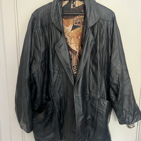 Superkul bomber-skinnjakke fra Redskins. Står at det er XXXL men jeg vil si det er en L/XL. Funker å bruke som en oversized jakke på en S/M også. Kjøpt brukt.