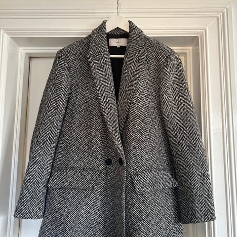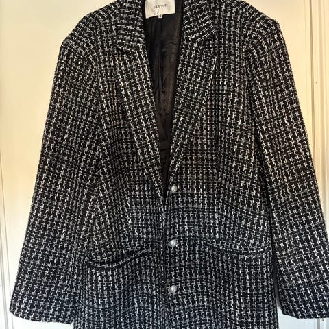 Klassisk blazer med tidløst houndstooth-mønster i størrelse M. Jakken har en fin, innsvinget passform og passer perfekt både til jobb og smart-casual antrekk.
