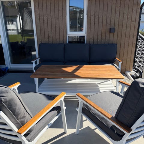Krifon hagegruppe sofa og stoler hvit med grå puter