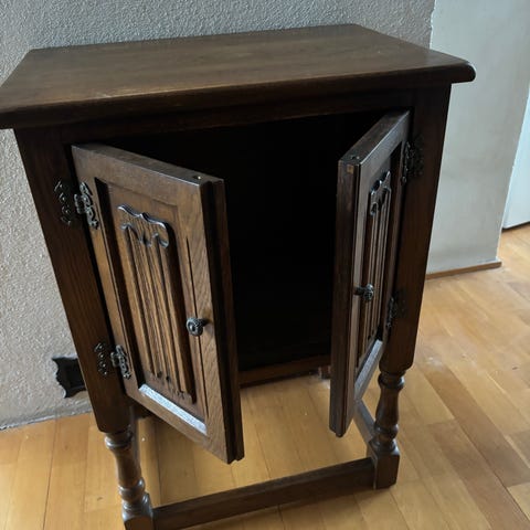 Bordene har fine utskjæringer i treverket og flettet rotting i topp og skuffefront. Passer godt både i moderne og mer tradisjonelle hjem.
