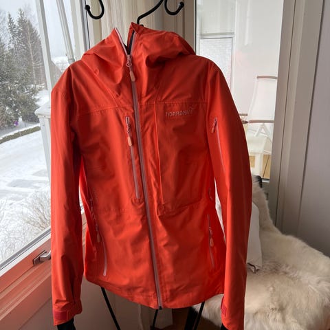 Norrøna jakke for dame i størrelse S. Jakken er laget i Gore-Tex-materiale og har en tofarget beige farge. Den har hette, hel glidelås foran og flere glidelåslommer, blant annet på bryst og erme. Ytterjakken er egnet som annet yttertøy til utendørs bruk, og gir værbeskyttelse takket være Gore-Tex-membranen.