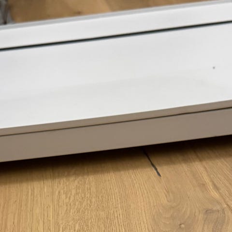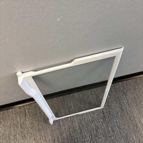 Bosch kjøleskap hylle i glass. Løs glasshylle med hvite plastkanter, beregnet for innvendig bruk i Bosch kjøleskap.