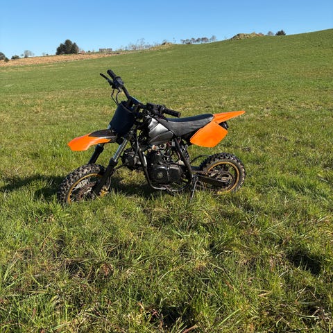 Dette er en godt brukt cross som starter og kjører fint. Jeg har gjort en del på denne og brukt mye penger. Den er 125cc, 4 takt. Den har rust på enkelte metall deler men ellers ser den fin ut. Bakbremsen funker greit men frambremsen er litt slitt. Jeg har brukt mer tid på denne enn den er kjørt. Clutchen er litt hard.