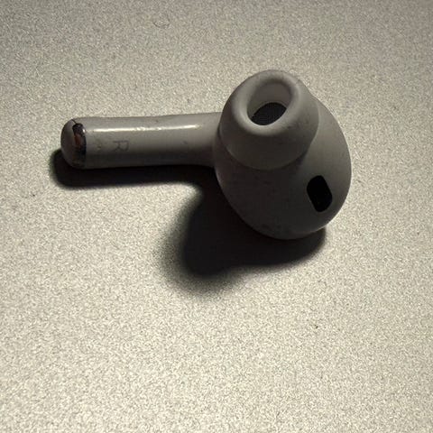 Selger AirPods Pro 2. Funker å spille musikk og alt, men støykanselleringen virker ikke til å gjøre stor forskjell. Selges derfor billig. Følger med propper i str M