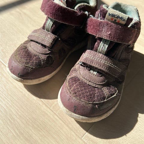 Viking barnesko i størrelse 30 for unisex. Skoene er i en lilla farge. Lite og pent brukt.