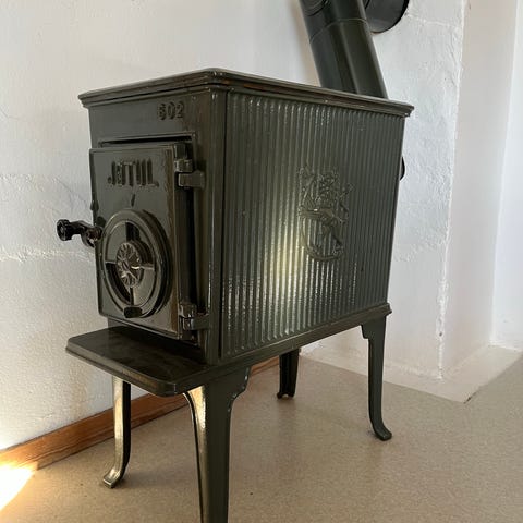 709 parafinovn i støpejern i svart farge. Ovnen har riflet front med integrert 709-logo og luftespalter på toppen.