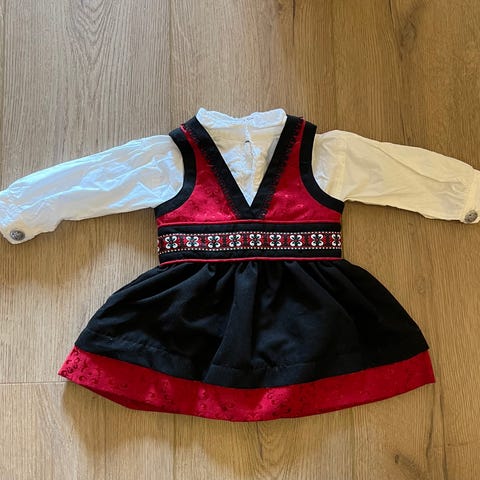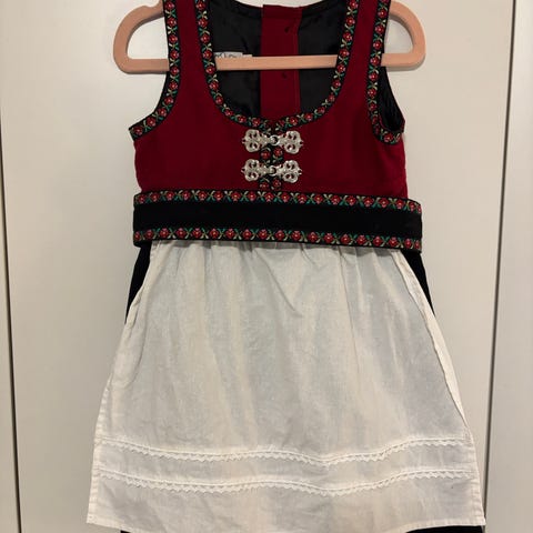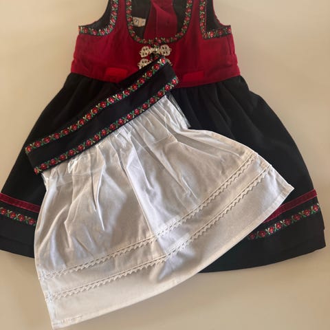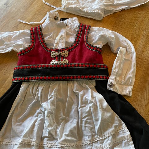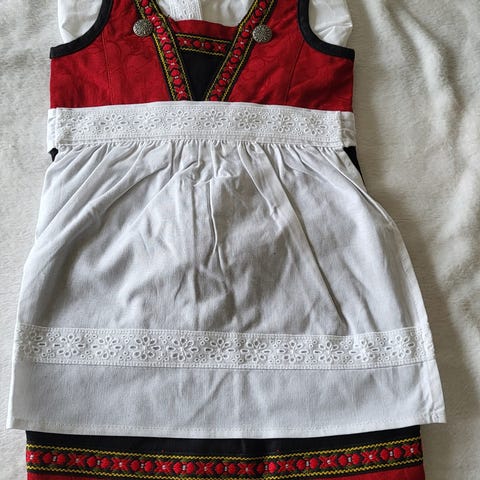 Hardangerbunad passende til jente fra ca 3 - 6 år selges. Mangler skjorte og skjørt. Den er ca 70år gammel og håndsydd av min tante.