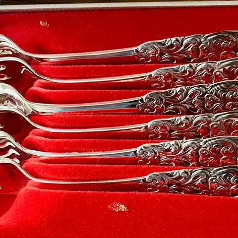 Komplett sølvbestikk. Valdres 830s fra Th. Marhinsens Sølvvarefabrikk i Tønsberg. Selges under 1/2 pris. Perfekt størrelse for gode middager, høytider og hyggelige selskap 🥰 Strøkent og brukt max 12 ganger. Alt bestikket blir profesjonelt pusset før overtakelse. Selges samlet og til høystbydende over prisantydning. Jeg betaler frakt.