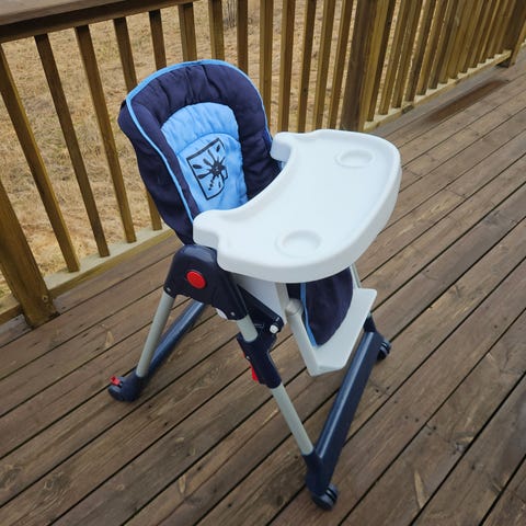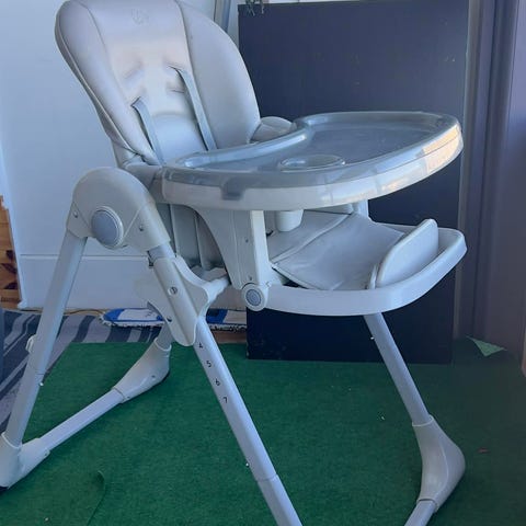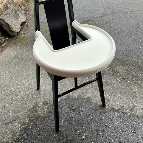 BRIO høy barnestol i tre. Stolen har sort ramme og sete/rygg, med avtakbar hvit bøyle foran. På bildene følger det også med ekstra deler som bøyle, fotbrett og en rød stolpute. Stolen er egnet som spise- og sitteplass for små barn ved bord.Kan fungere som vanlig stol for litt eldre barn. Lett å montere. Kan leveres mot betaling.
