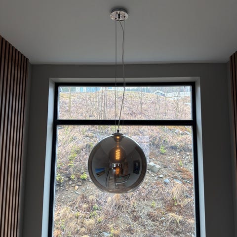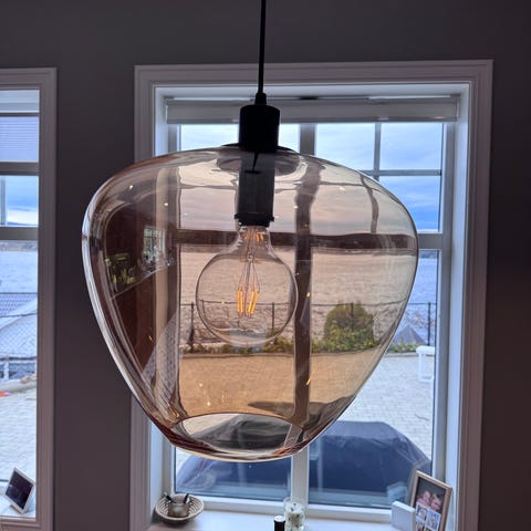 Selger vår herstal taklampe i glass og chrome. Veldig fin og ser ubrukt ut!