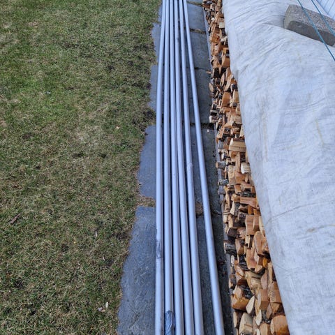 Skruehull og noen skader, men om man kutter noe i endene kan man få mye ut av alle platene. 4 stykker. Ca 3 meter lange og 1 meter brede.