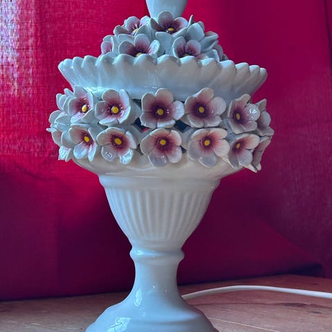 Selger en bouillotte-lampe, en tradisjonell fransk bordlampe fra det 18. århundre, ofte laget av messing med en karakteristisk grønn metallskjerm. Lampen har en rund base (opprinnelig designet for å holde spillebrikker) og en justerbar skjerm som kan flyttes opp og ned på en sentral stang. Navnet kommer fra et fransk kortspill kalt "bouillotte", og lampen ble laget for å gi passende belysning uten blending under spillet. Kan både stå på bordet eller henges på veggen.