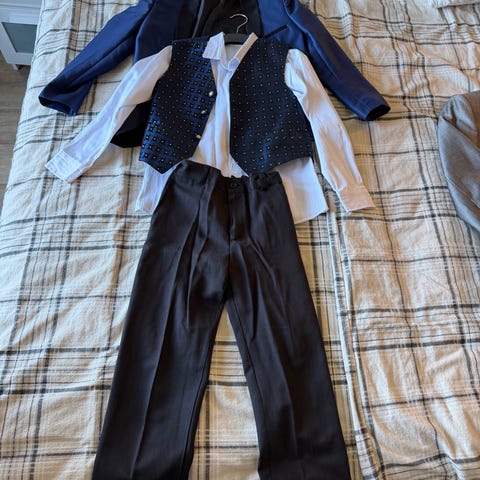 Selger en fin og pent brukt Romeriksbunad til gutt. Passer 8 år og oppover, bunaden kan sys ut og inn så str er fleksibel.