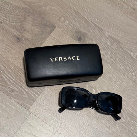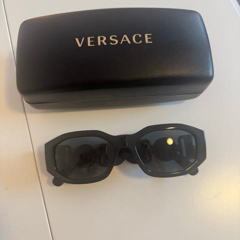 Vurderer å selge mine versace solbriller da de ikke blir brukt nok. Utrolig kule og stilrent design, og håper kanskje en ny eier vil få gleden av de. Noen bruksmerker som jeg har prøvd å få frem på bildene, men vil ikke si de er særlig merkbare ved bruk