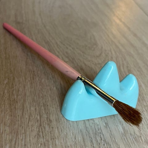 Fin liten holder eller stativ til malepensler. Keramisk eller stein-konstruksjon.