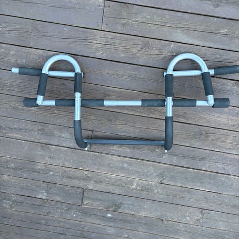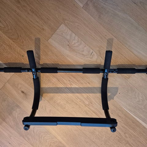 Adidas pull up bar dørstang i svart metall med polstrede håndtak. Kan henges over dørkarm for chins og pull ups, og har flere gripeposisjoner for varierte overkroppsøvelser. Egnet til bruk hjemme der det er passende døråpning og stabil karm.