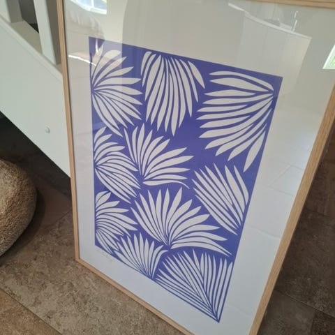 Desenio plakater sett i svart-hvitt. Den ene plakaten har tekstmotiv med ordet «Beauty», den andre viser et benmotiv i svart-hvitt. Begge plakatene er innrammet med smale, mørke rammer (IKEA) og er egnet som veggdekor i flere rom. Mål på bildene: 50 x 70 cm.