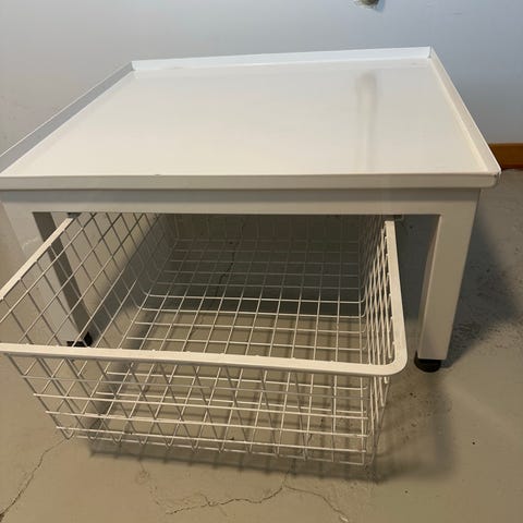 Høyde stativ til vaskemaskin til salgs med uttrekkbar oppevaringskurv. Sendes ikke, kan event. Ordnes transport mellom Fredrikstad og Oslo ved nærmere avtale.