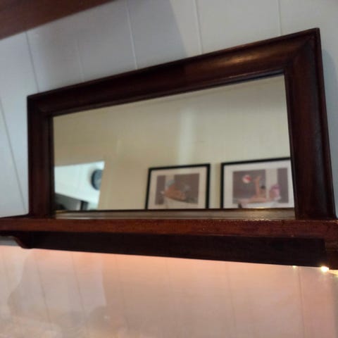 Veldig gammelt speil med hylle i utskåret tre - til salgs ved henting!