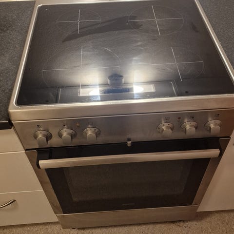 Selger en Hisense elektrisk komfyr i hvit farge med stor stekeovn på 71 liter og keramisk platetopp med 4 kokesoner. Komfyren er praktisk, moderne og enkel i bruk, perfekt for vanlig matlaging i hjemmet.