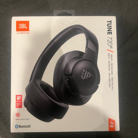 🎧JBL Tune 720BT hodetelefoner er trådløse over‑ear hodetelefoner i svart farge. Med 75h spille tid.