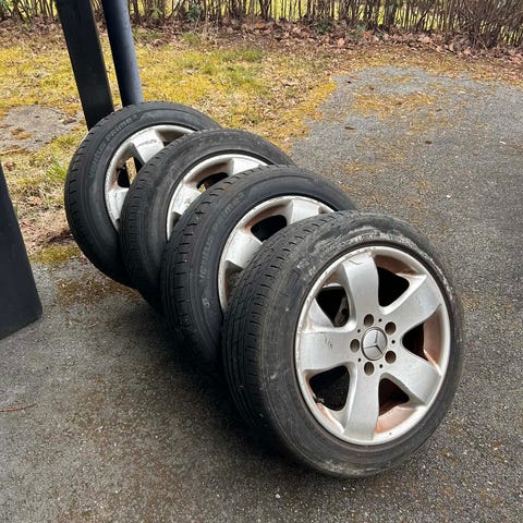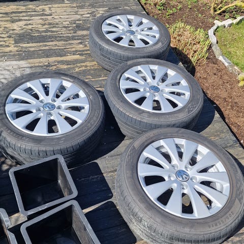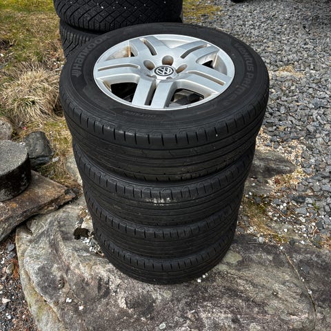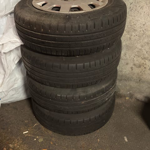 Selger et komplett sett med sommerdekk på 15 tomms felg. Dekkene er rimelig slitt og bør byttes. Felgene er i god stand. Hatt disse på en audi A4 B5 99modell