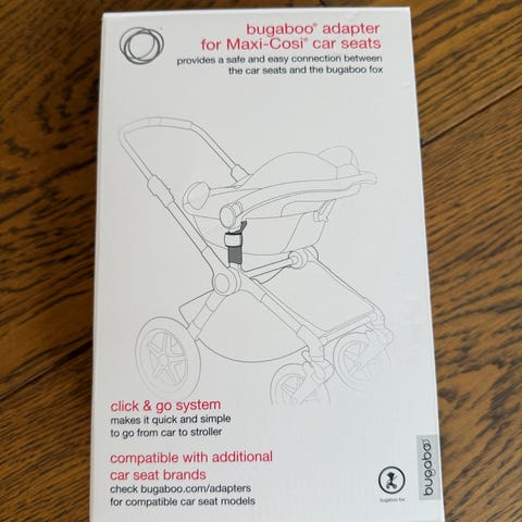 Selger en Bugaboo adapter til Maxi-Cosi bilstol. Med adapteren er det mulig å feste en kompatibel Maxi-Cosi babybilstol på en Bugaboo-barnevogn. Veldig kjekt når man skal en kjapp tur på butikken eller lignende og ikke vil flytte baby fra bilstol til vogn☺️