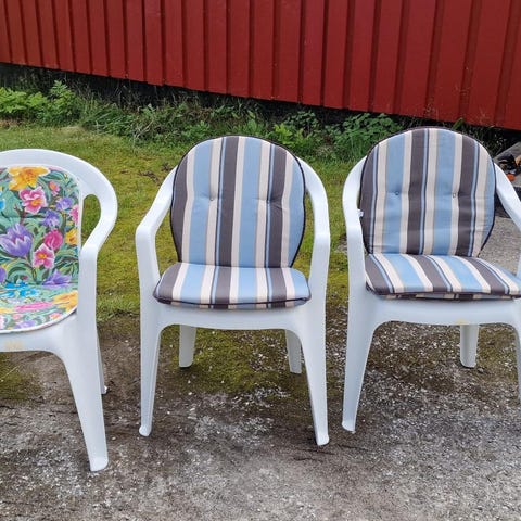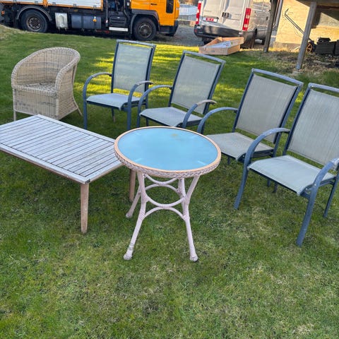Café sett og 4 stk 5-punktsstoler med puter gis bort